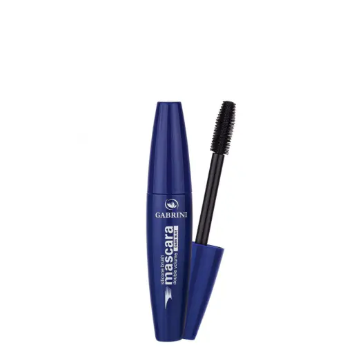 מסקרה כחולה בעלת מברשת סיליקון המעבה, מעגלת ומאריכה, המעניקה נפח לריסים.